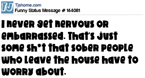 X says I never get nervous or embarrassed. That's just some sh*t that sober people who leave the house have to worry about.