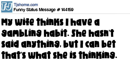 X says My wife thinks I have a gambling habit. She hasn't said anything, but I can bet that's what she is thinking.