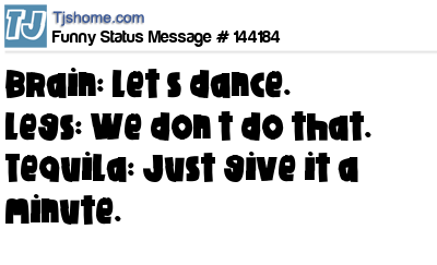 X says Brain: Let’s dance. Legs: We don’t do that. Tequila: Just give it a minute.