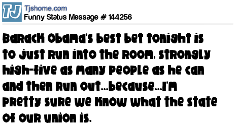 X says Barack Obama's best bet tonight is to just run into the room, strongly high-five as many people as he can and then run out...because...I'm pretty sure we know what the state of our union is.