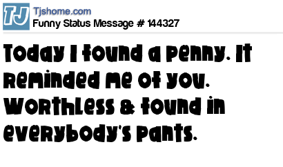 X says Today I found a penny. It reminded me of you. Worthless & found in everybody's pants.