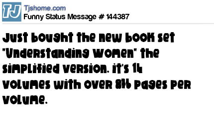 X says Just bought the new book set "Understanding Women" the simplified version. it's 14 volumes with over 876 pages per volume.