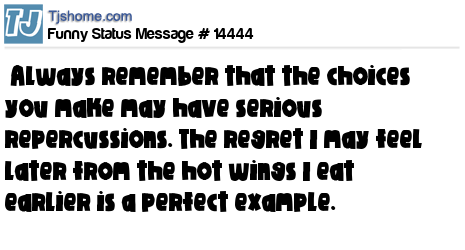 X says Always remember that the choices you make may have serious repercussions. The regret I may feel later from the hot wings I eat earlier is a perfect example.
