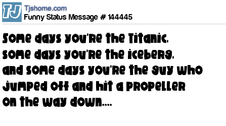 - # 151739 Some days you’re the Titanic, some days you’re the iceberg, and some days you’re the guy who jumped off and hit the propeller on the way down.