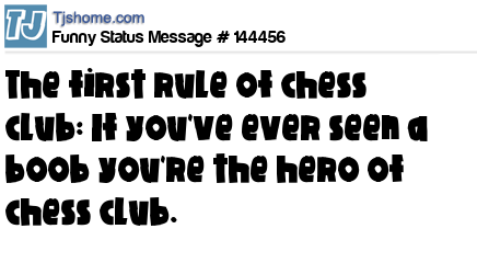 X The first rule of chess club: If you've ever seen a boob you're the hero of chess club.