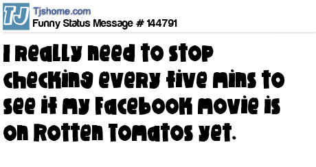 X I really need to stop checking every five mins to see if my Facebook movie is on Rotten Tomatos yet.