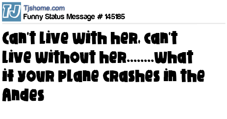 X Can't live with her, can't live without her........what if your plane crashes in the Andes