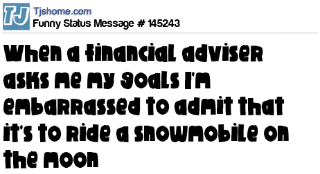 X says When a financial adviser asks me my goals I'm embarrassed to admit that it's to ride a snowmobile on the moon