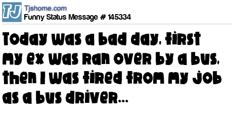 X says Today was a bad day, first my ex was ran over by a bus, then I was fired from my job as a bus driver...
