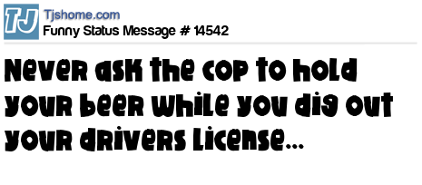 X says Never ask the cop to hold your beer while you dig out your drivers license...
