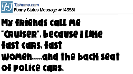 X  My friends call me "Cruiser", because I like fast cars, fast women.....and the back seat of police cars.