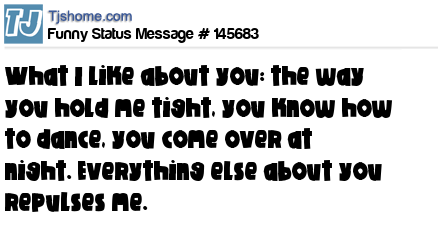 X says What I like about you: the way you hold me tight, you know how to dance, you come over at night. Everything else about you repulses me.