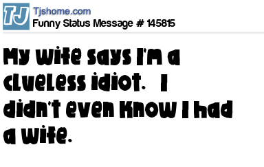 X says My wife says I'm a clueless idiot. I didn't even know I had a wife.