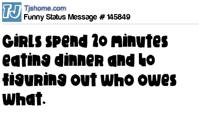 X says Girls spend 20 minutes eating dinner and 40 figuring out who owes what.