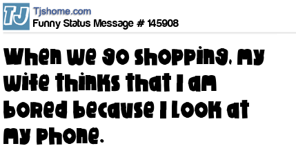 X says When we go shopping, my wife thinks that I am bored because I look at my phone.
