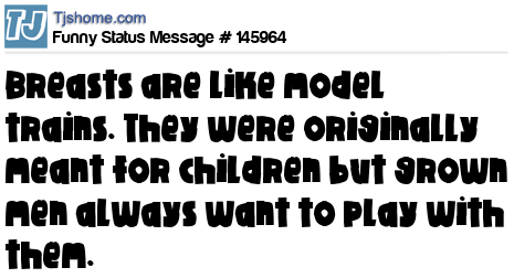 - # 146007 Boobs are like model trains. They were originally for children but grown men always want to play with them.
