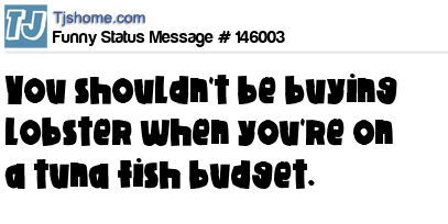 X says You shouldn't be buying lobster when you're on a tuna fish budget.