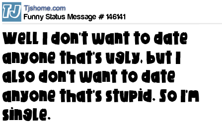 X says Well I don't want to date anyone that's ugly, but I also don't want to date anyone that's stupid. So I'm single.