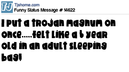 - # 20982 she danced around my room naked waving around the gold trojan magnum condoms singing "i have the golden ticket."