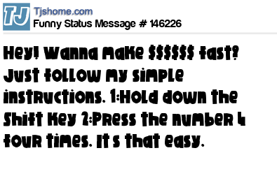X says Hey! Wanna make $$$$$$ fast? Just follow my simple instructions. 1:Hold down the Shift key 2:Press the number 4 four times. It’s that easy.