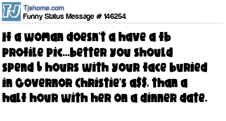 X If a woman doesn't a have a fb profile pic...better you should spend 6 hours with your face buried in Governor Christie's a$$, than a half hour with her on a dinner date.