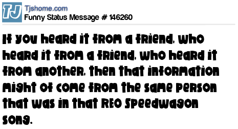 X If you heard it from a friend, who heard it from a friend, who heard it from another, then that information might of come from the same person that was in that REO Speedwagon song.