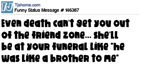 X says Even death can't get you out of the friend zone... she'll be at your funeral like "he was like a brother to me"