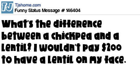 X says What's the difference between a chickpea and a lentil? I wouldn't pay $200 to have a lentil on my face.