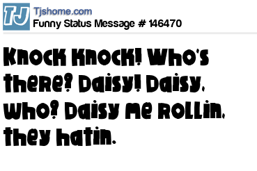 - # 148015 knock knock.. who's there? Daisy. Daisy who?? Daisy me rollin, they hatin