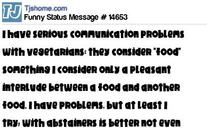 - # 34091 Note to vegetarians: My food poops on your food. Enjoy that salad!