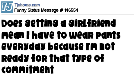 X says does getting a girlfriend mean I have to wear pants everyday because I'm not ready for that type of commitment