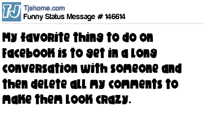 - # 124537 My favorite thing to do on Facebook is to get in a long conversation with someone and then delete all my comments to make them look crazy