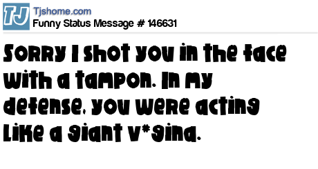 X says Sorry I shot you in the face with a tampon. In my defense, you were acting like a giant v*gina.