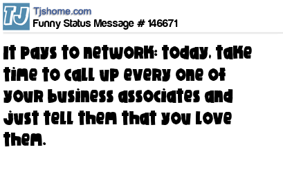 X says It pays to network: today, take time to call up every one of your business associates and just tell them that you love them.