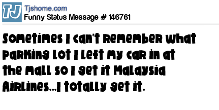 X says Sometimes I can't remember what parking lot I left my car in at the mall so I get it Malaysia Airlines...I totally get it.