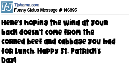 X says Here's hoping the wind at your back doesn't come from the corned beef and cabbage you had for lunch. Happy St. Patrick's Day!