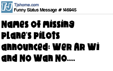 X Names of missing plane's pilots announced: Wer Ar Wi and No Wan No....