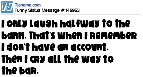 X says I only laugh halfway to the bank. That's when I remember I don't have an account. Then I cry all the way to the bar.