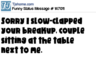 X says Sorry I slow-clapped your breakup, couple sitting at the table next to me.