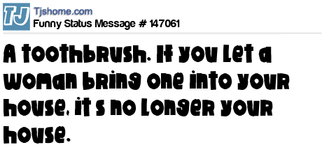 X says A toothbrush. If you let a woman bring one into your house, it’s no longer your house.