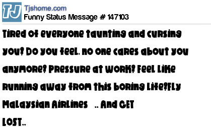 X says Tired of everyone taunting and cursing you? Do you feel, no one cares about you anymore? Pressure at work? Feel like running away from this boring life?Fly Malaysian Airlines ✈.. And GET LOST..✈