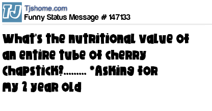 X What's the nutritional value of an entire tube of cherry Chapstick?......... *Asking for my 2 year old