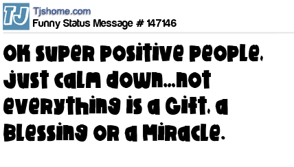 - # 165711 Dear Super-Positive People: Calm down. Not everything is a blessing, a miracle, or a gift from God. Sometimes things just happen.