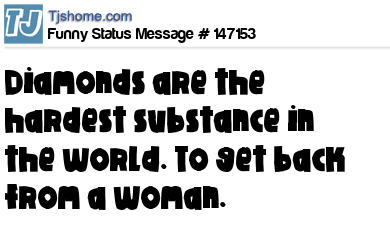 X says Diamonds are the hardest substance in the world. To get back from a woman.