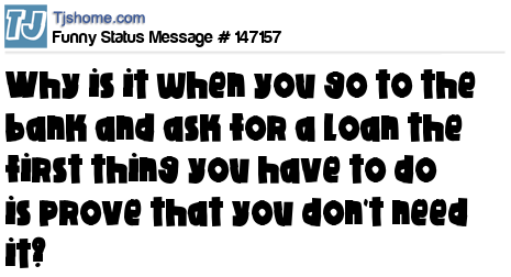 - # 178215 Why is that when you apply for a loan at the bank the first thing you have to do is prove you don't need it?