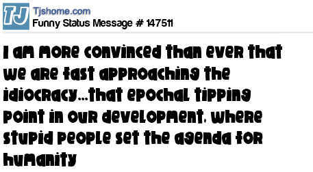 X says I am more convinced than ever that we are fast approaching the idiocracy...that epochal tipping point in our development, where stupid people set the agenda for humanity