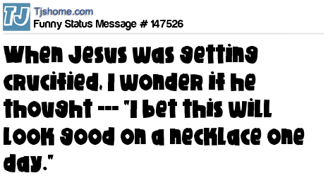 X When Jesus was getting crucified, I wonder if he thought --- "I bet this will look good on a necklace one day."