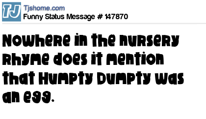 - # 24806 wants to know where in the rhyme it says Humpty Dumpty is an egg!