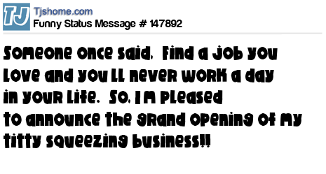 X Someone once said, “Find a job you love and you’ll never work a day in your life.” So, I’m pleased to announce the grand opening of my titty squeezing business!!