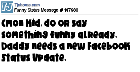 X says Cmon kid, do or say something funny already. Daddy needs a new Facebook Status Update.